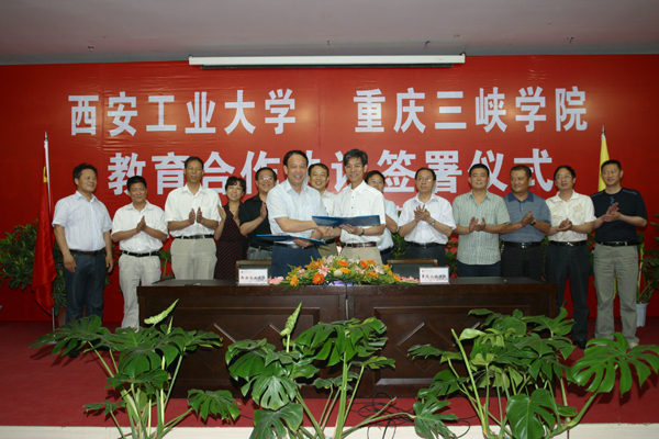 (本网讯)按照《渝陕教育合作协议》的要求,根据我校与重庆三峡学院商议通过的“结对”发展总体框架,为推进西安工业大学和重庆三峡学院教育合作向纵深发展,重庆三峡学院校长孙芳城一行7人于6月20日抵陕,并于6月21日在我校未央校区隆重举行西安工业大学、重庆三峡学院教育合作协议签署仪式。西安工业大学党委书记赛云秀与重庆三峡学院校长孙芳城代表双方学校在合作协议上签字。