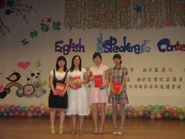 4月10日-5月6日,举办了“风采杯”英语演讲大赛。参赛选手们通过预备演讲,现场提问,即兴演讲等,尽情的展示自己的英语实力与演讲才华,最终来自08级外语系的张凤同学一举夺魁。6月2日,张凤等四名同学代表西安工大参加西安医学院举办的第二届“友谊杯”北郊三校联合英语演讲比赛,取得了优异的成绩。