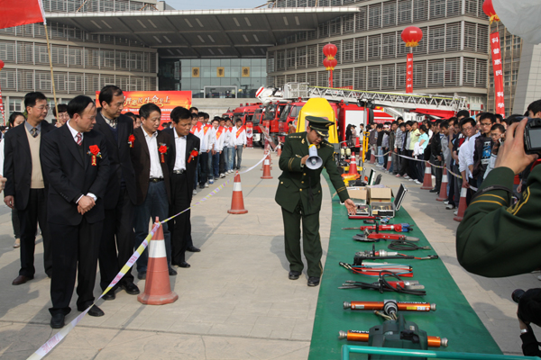 当天,有关单位还在学校分别举办了消防装备器材展示和消防科普知识讲座等相关活动。消防坦克、消防车辆、消防救护器材等众多大型、先进的消防器材在西安市消防支队干警的现场演示下,让在场师生大开眼界。同时举办的还有消防科普知识展览。