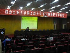 校团委副书记赵琼介绍了西安工大大学生骨干培养工作的基本情况、以及本次培训的形式及内容,并对全体参训学员从思想、工作上提出了要求。随后,建筑工程学院090701班的团支书杜艳梅同学代表参加培训班的全体学员发言。表示将认真参训、努力实践,在平时学习工作中积极组织广大同学参与班团活动,不断提高自身理论水平与工作能力。