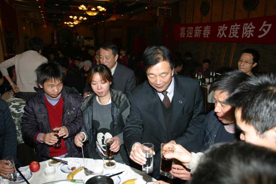 (本网讯)寒假期间,我校有40余名学生没有回家过年,校女子篮球队10余名队员也在校集训。虎年除夕,学生处组织留校学生会餐,并为每位学生发放了红包,送去了新春的祝福。校领导丁养斌、张君安出席。学生处、体育部有关领导陪同。