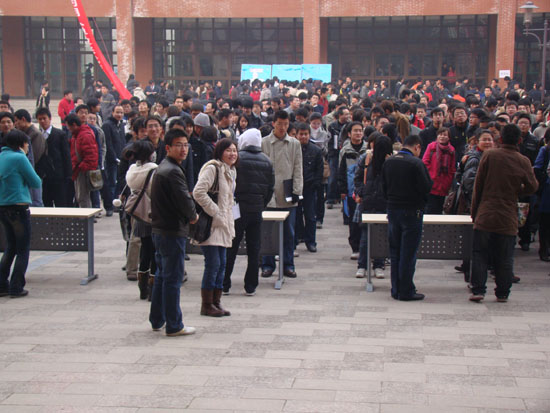 此次参会用人单位和需求信息与去年相比增幅较大,参会单位数量是08年的一倍。从招聘情况看,签订就业协议以及与单位达成就业意向的学生人数与08年相比有所增加;从需求专业来看,西安工业大学的机械设计制造及其自动化、电气工程自动化、金属材料、土木工程等专业需求量较多。会上,两校共有近百名学生在现场与用人单位成功签约或达成就业意向。随着各参会单位笔试、面试工作的进行,陆续还会有更多的学生与用人单位签订就业协议或达成就业意向。