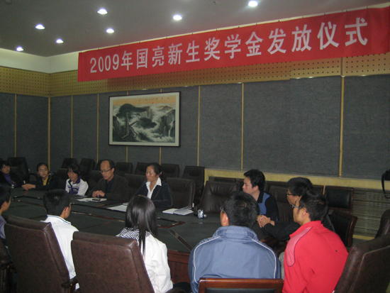 (本网讯)10月12日,西安工业大学举办2009级“国亮新生奖学金”颁奖仪式。学生处处长任慧英为获奖新生颁发奖金及荣誉证书。
