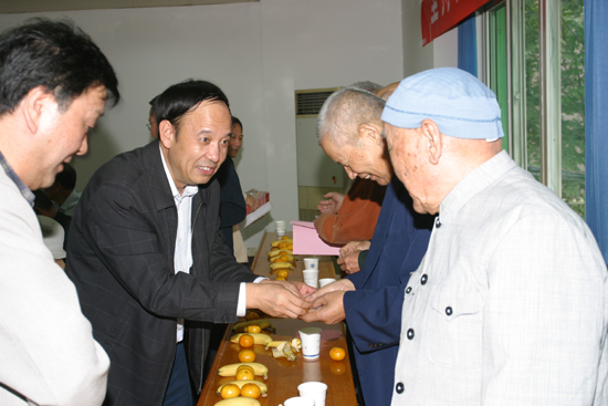 刘江南校长在讲话中指出:我校办学五十多年来,形成了“敦德励学、知行相长”的校训和“忠诚进取、精工博艺”的办学传统,各位老同志在学校的改革发展中做出了重要贡献,学校是不会忘记您们的。目前学校正处于发展的关键时期,申博工作取得重大进展,近日荣获第六届高等教育国家级教学成果奖,这些成绩的取得与老同志的关心支持是分不开的。学校的发展离不开老同志,随着学校经济形势的好转,学校将尽可能改善老同志的福利待遇,做好各项服务工作,使老同志健康快乐生活。