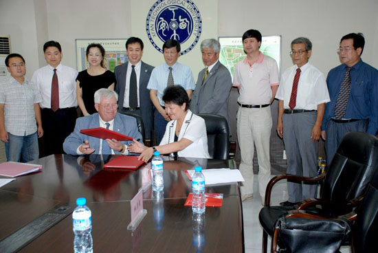 (本网讯)8月28日,美国北阿拉巴马州立大学校长William G. Cale,Jr校长访问西安工业大学北方信息工程学院。北方信息工程学院董事长刘江南教授、副院长薛虹教授在金花校区与William G. Cale,Jr校长进行了亲切友好的会谈,双方就“2+2” 、“3+2”模式合作事宜充分交换了意见并达成了共识,签署了合作协议。