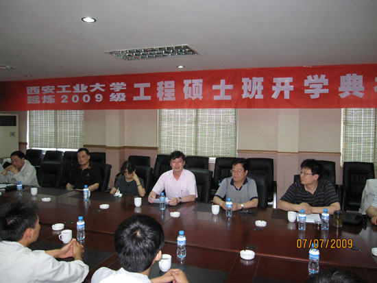 (本网讯)7月7日下午,西安工业大学在延安炼油厂举行2008级工程硕士开学典礼。副校长刘卫国,研究生部领导陈桦、雷亚萍等领导出席典礼,延安炼油厂副总经理马永乐、厂长柳荣漳、党委书记冯建平及40多名新学员参加了典礼。