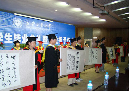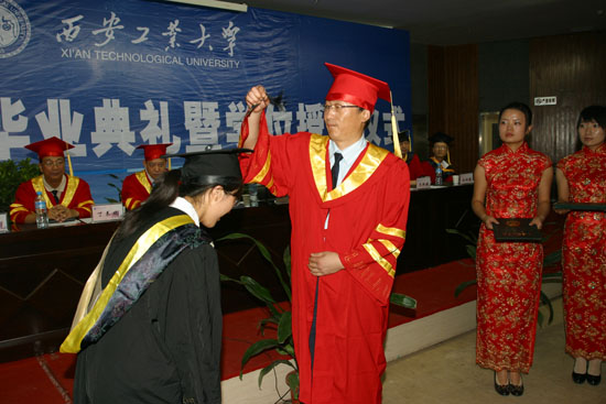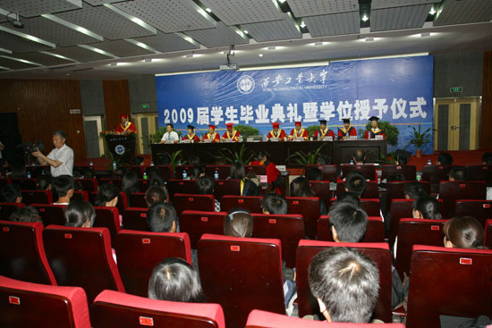 (本网讯)7月2日下午,西安工业大学在未央校区学术报告厅隆重举行2009届学生毕业典礼暨学位授予仪式。党委书记赛云秀、校长刘江南、党委副书记丁养斌、副校长刘建勋、校长助理陈桦,党(校)办、学生处、教务处、团委、国际交流处等部门和院系领导出席了仪式,部分学生家长也应邀来到仪式现场。党办、校办主任张志昌主持仪式。