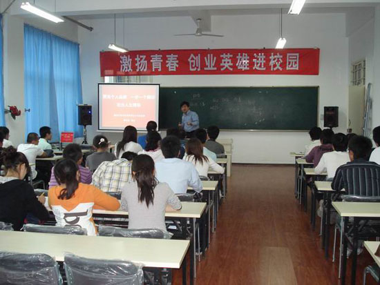 (本网讯)5月26日下午,由西安工业大学团委、学生处、国际交流与对外合作处共同举行的励志论坛之“激扬青春,创业英雄进校园”——校友与你分享成长历程首场报告交流会在未央校区举行。西安工大92级材化学院校友陕西中智文化有限责任公司总经理、西安工大中智奖学金设立者李存杰校友来到母校与学生做创业就业的探讨和交流。