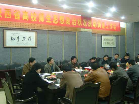 (本网讯)3月10日上午,省教育工委2009年陕西高校师生思想政治状况滚动调查工作会在西安工业大学召开。省委教育工委宣教处副处长张玉明、西安交通大学、长安大学、西北工业大学等9所高校的学工部、宣传部领导参加了会议。