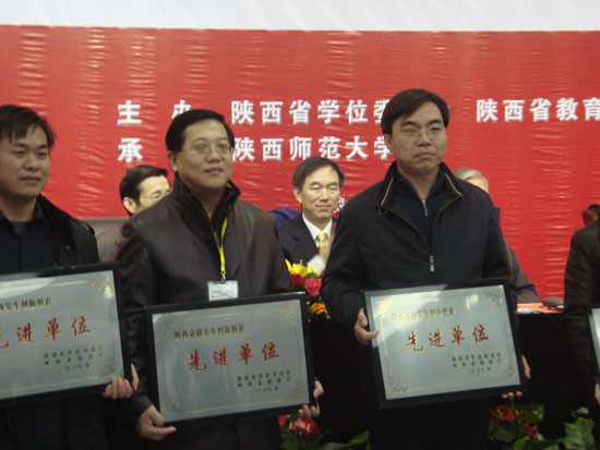 (本网讯)1月6日,陕西省研究生教育创新工作会议及表彰大会在陕西师范大学隆重召开,陕西省副省长朱静之、教育厅和陕西地区研究生培养单位主管领导及部门负责人参加了会议。西安工业大学获得“陕西省研究生创新教育先进单位”,刘卫国副校长、陈桦助理和卢莉萍三人获得“陕西省研究生创新教育先进个人”。