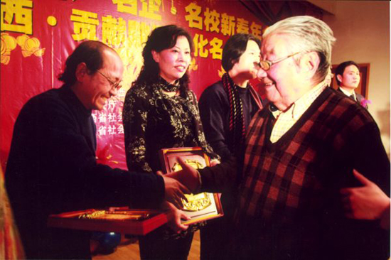 (本网讯)2009年来临之际,由陕西省人民政府外事办、陕西省教育厅、陕西省公安厅、陕西省旅游局、陕西省社科院长安文化研究中心和陕西省社科院中国书画研究中心联袂主办的“2008年影响陕西、贡献陕西文化名人”颁奖晚会及2009名家、名企、名校新春联谊会在西安唐城宾馆隆重举行。西安工业大学艺术与传媒学院院长、陕西省教学名师于唯德教授应邀参加联谊会并荣获“2008年影响陕西、贡献陕西50位文化名人”荣誉奖。