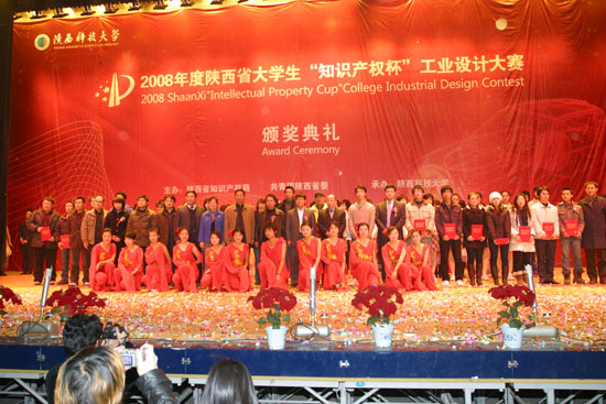 (本网讯)12月19日晚,第三届陕西省大学生“知识产权杯”外观设计大赛颁奖典礼在陕西科技大学文体馆隆重举行,西安工业大学3件作品获一等奖,3件作品获二等奖,4件作品获三等奖,5件作品获优秀奖,并获优秀组织奖,获奖总数和层次位居参赛高校前列。