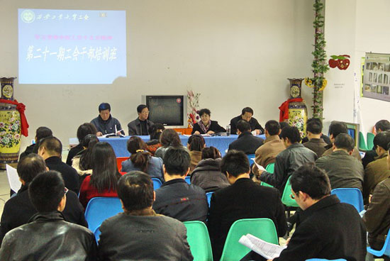 (本网讯)为深入学习贯彻中国工会十五大精神,促进学校工会工作上新台阶,西安工业大学工会于12月2日举办了工会干部培训班,党委副书记丁养斌对下一步做好工会工作提出要求。校工会委员、基层工会主席、工会专职干部、教代会代表组组长参加了培训,各分党委书记和党总支书记应邀参加了培训学习。