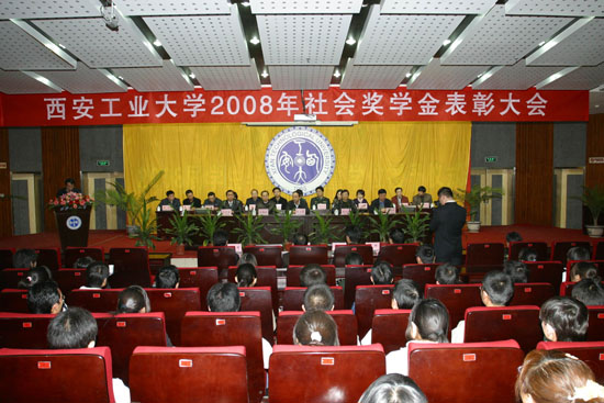 (本网讯)11月28日,西安工业大学隆重召开2008年社会奖学金表彰大会。校党委书记赛云秀、校长刘江南、党委副书记丁养斌、副校长张君安、刘卫国、校长助理陈桦出席大会。参加大会的还有设奖单位领导及校学生工作部、研究生部、国际交流与对外合作处、各院系及雁塔校区等部门领导、获奖学生代表等。