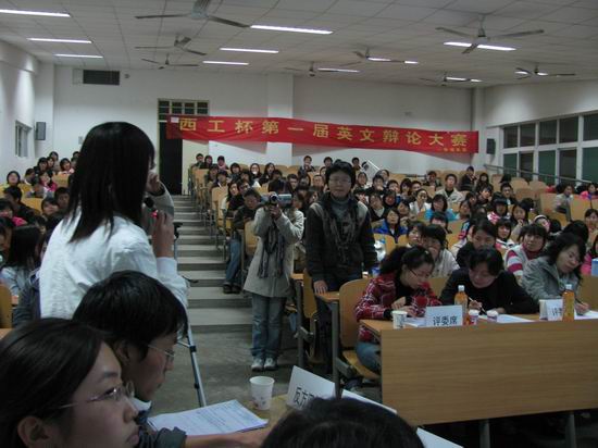 电信学院三年级与电信学院四年级代表队在冠亚军争夺中展开了一场精彩而激烈的“口舌大战”。辩论双方针对“全才和专才哪个更适合激烈竞争的社会需要”展开了激烈地争辩。辩手们自信而激昂的陈述和团队协作精神给观众留下了深刻印象,赛后评委精彩的英文点评更让人受益匪浅。