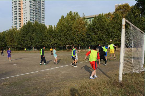 (本网讯)近日,从四川、河北、陕西、内蒙古等外地工作岗位赶来的西安工业大学校友足球联队回到母校,与母校体育、机械教工队举行了一场友谊比赛。