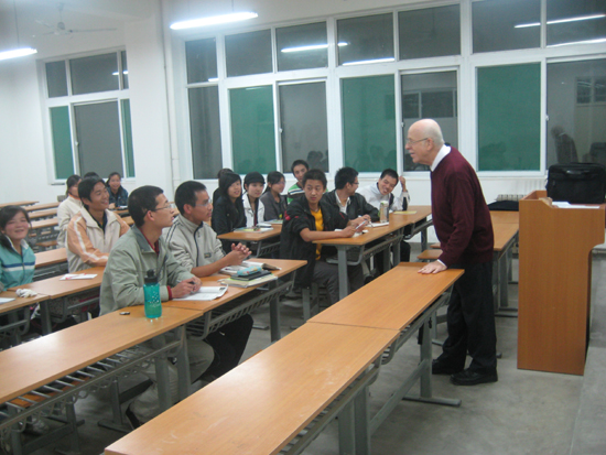 本次阳光技能培训的主要内容是英语四级考前辅导和英语口语培训,参加培训的学生都是各院系推荐的家庭经济困难学生,与以往不同的是,本次培训增加了英语口语课程,并且特邀了本校外籍教师Jack为同学们授课。Jack教授渊博的学识、幽默的语言、纯正的英语发音,以及来自异域的别样风情感染了每一个参加培训的学生。同学们高兴地说:“聆听外教讲课,感觉棒极了!”