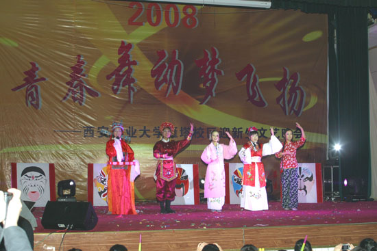 (本网讯)10月28日晚,西安工业大学雁塔校区主办的主题为“青春舞动梦飞扬”的迎新生文艺晚会在省委党校大礼堂隆重上演。西安工大党委书记赛云秀、校长刘江南、党委副书记丁养斌、副校长张君安、北方信息工程学院党委书记简林根、中共陕西省委党校副校长郑志飚、副校长宦洁、纪检组组长苏智等领导观看了晚会。