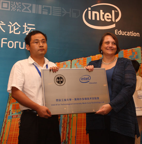 (本网讯)8月30日,在“2008英特尔中国多核技术学术论坛”中,西安工业大学接受了Intel全球大学合作经理JoZell Dale Johnson的授牌,标志着“西安工业大学-Intel多核技术实验室”的正式成立。