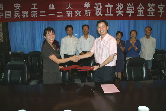 (本网讯)中国兵器工业第212研究所在西安工业大学正式设立研究生奖学金,9月9日,在金花校区隆重举行了签字仪式。212研究所党委副书记李浛沛、人力资源部副部长武宏林和西安工大党委副书记丁养斌、副校长刘卫国、校长助理陈桦、学生处处长任慧英、研究生部党总支书记雷亚萍、研究生部副主任张群等参加了签字仪式。