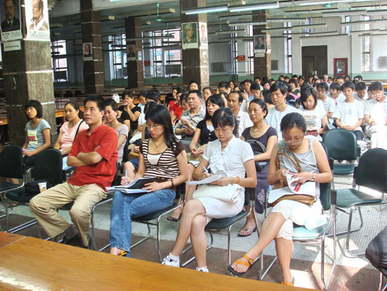 在23日的第一次全体大会上,郭承运馆长作大会发言,对图书馆工作人员定量考核工作进行了说明,讲解了提交大会讨论的《图书馆工作人员行为规范(草案)》;徐卫军主任讲解了提交大会讨论的《图书馆定量考核办法(草案)》。会后分七个小组就综合奖励办法、各部室工作流程、岗位职责、业务考核办法等议题进行了热烈的讨论。小组讨论结束后召开了考核委员会与各组组长的联席会议,根据各小组职工的讨论意见修改了相关文件。