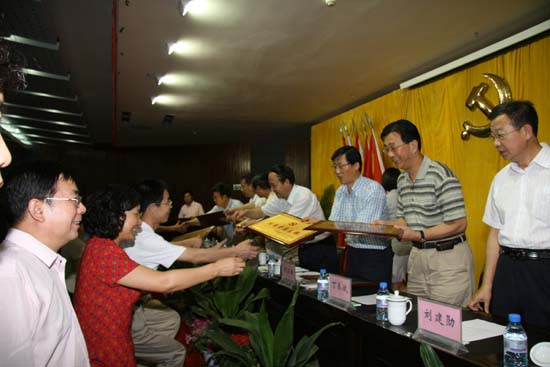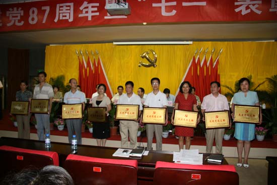 党委副书记、校长刘江南宣读了《关于表彰2007-2008学年度先进党总支部先进党支部优秀共产党员和分党委(党总支直属党支部)评估优秀单位的表彰决定》,党委委员为受表彰的基层党组织代表和个人颁奖。