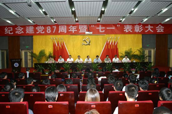 校党委书记赛云秀在会上做了重要讲话。他首先代表校党委,向全校共产党员致以节日的问候,向受到表彰的先进集体和个人表示热烈祝贺并致以崇高的敬意。他在讲话中回顾了中国共产党87年的光辉历程,对我校党建工作取得的成果进行了总结。号召全校各级党组织和广大共产党员认真贯彻落实党的十七大会议精神,以改革创新精神全面推进学校党的基层组织建设,以党的先进性推动和谐校园建设,使学校改革发展稳定的各项事业不断取得新的成就。