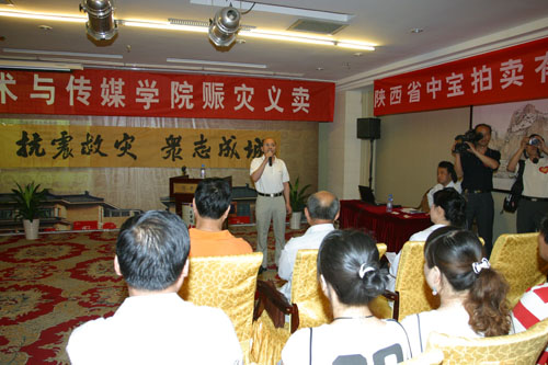 (本网讯)连日来,汶川地震灾情牵动着西安工业大学师生员工的心。5月31日,在西安曲江亮宝楼,西安工大又将百余幅师生书画作品公开拍卖,所得款项20000元直接汇入陕西省红十字会赈灾专用帐户,为灾区的兄弟姐妹送去温暖。