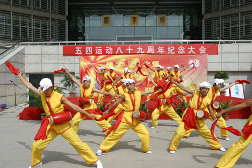 在强劲有力的鼓点声中,一系列文体表演陆续登场。有独具陕北特色的安塞腰鼓,有动感时尚的街舞,有气势恢宏的中华武术,还有活力十足的健美操,充分展示了西安工大学生朝气蓬勃的青春风采。