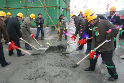 9:50分,陈俊斌副校长宣布封顶仪式开始,顿时施工现场鞭炮齐鸣,学校向施工单位赠送了慰问品,施工单位项目部经理、四方监理公司总监向学校和外单位来宾分别介绍了施工、监理情况,表达了建设精品工程的决心。