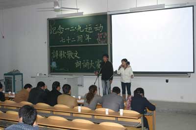 (本网讯)12月6日,西安工业大学团委举办“纪念一二九运动七十二周年”诗歌散文朗诵比赛。