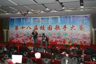 (本网讯)12月3日晚,西安工业大学未央校区图书馆报告厅座无虚席,由校团委主办、电信学院承办的以"青春、魅力、和谐"为主题的校"第十八届校园歌手大赛"在此隆重举行。
