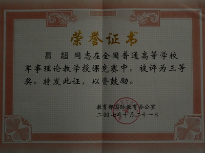 (本网讯)10月19日—21日,首届全国普通高等学校军事理论教学授课竞赛在西安交通大学举行,西安工业大学青年教师易超荣获三等奖。