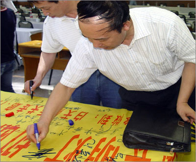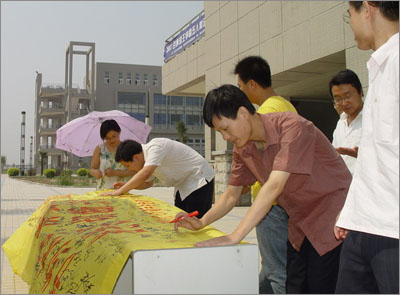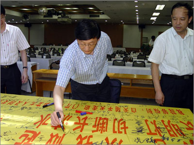 (本网讯)为了发动广大教职工从我做起,从小事做起,切实落实和推动节俭办学,校工会、国资处、后勤集团联合举行了“节水节电从我做起”教职工签名活动。此次活动首先于6月24日在校工会举办的“我为整改提建议”“节俭办学好点子”最佳建议和优秀建议者与校领导座谈会暨表彰大会上启动,6月25日和6月28日分别在金花校区和未央校区进行了签名活动。参加签名的四百余名教职工表示,要把节约每一度电、每一滴水、每一张纸作为自己义不容辞的责任。