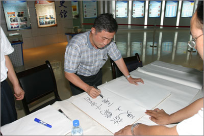 6月14日,美国密苏里拉大学矿业工程系教授,著名美籍华裔矿业专家、学者田正仁博士应邀访问我校。下午3时,在党委书记赛云秀教授陪同下,田正仁博士首先到未央新校区参观访问,学校有关部门领导陪同参观和讲解。在校史馆赛云秀书记亲自为田正仁博士讲述了西安工业大学52年的发展历史和取得的巨大成就,田正仁博士从中看到了祖国教育事业发展的缩影,非常振奋,在留言簿上兴致勃勃挥毫题写“欲穷千里目,更上一层楼”,表达对西安工业大学发展的厚望。在恢弘壮观的校图书馆,赛云秀书记在未央校区规划模型边,向田正仁博士介绍了未央校区的总体布局和发展前景。在兵器馆,田正仁博士看到了我校军工背景的鲜明特色。在工业中心,认知馆的创建,让田正仁博士由衷赞赏学校办学的科学理念。