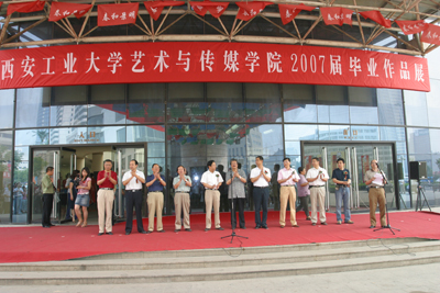 6月7日上午,西安工业大学在陕西省美术博物馆举办2007届艺术与传媒学院毕业生作品展。中共陕西省委宣传部副部长、陕西省文联党组书记刘斌,中国书法家协会顾问、陕西省书法家协会名誉主席钟明善,中国书法家协会理事、陕西省书法家协会主席雷珍民,陕西省文史研究馆馆长李炳武,陕西省书法家协会副主席、陕西省美术博物馆馆长李杰民,北京师范大学书法专业教授倪文东,陕西省书法家协会副主席、终南印社社长赵熊,陕西省书法家协会副主席薛养贤,西安美术学院设计系主任彭程,西安建筑科技大学艺术学院院长杨豪中,西北大学艺术学院院长庞永红等嘉宾,我校党政领导赛云秀、刘江南、张君安,中央驻陕及省内共9家媒体单位的新闻记者,以及西安交通大学、西北大学、西安建筑科技大学、陕西师范大学、西安美术学院、我校师生代表出席了展览开幕式。开幕式由西安工业大学艺术与传媒学院院长于唯德主持。