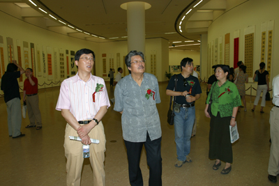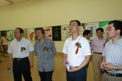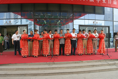 刘斌、钟明善、雷珍民、李炳武等嘉宾,我校领导赛云秀、刘江南、张君安等共同为2007届艺术类毕业生作品展览剪彩。