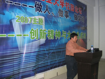 5月17日晚7:30,在西安工业大学未央校区举行了未央大讲堂系列讲座之——大学生创业问题探讨。本次讲座由国际交流与对外合作处(校友总会)、校团委主办,电信学院承办。特别邀请我校78级校友、曾经长期担任我校教学工作、现任西安全星智能电子有限责任公司董事长王林祥老师主讲。王林祥也是第一个在我校设立企业奖学金的业界人士。