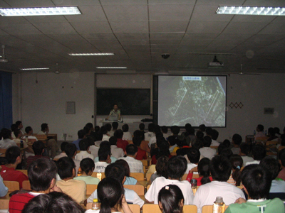 教授对新中国的国防发展状况进行了回顾,给大家展示了我中国人民解放军陆、海、天、空武器装备发展的良好形势,并对在座的各位怀着爱国之心的学子们给予了鼓励,鼓励大家好好学习科学文化知识,报效祖国。讲座现场气氛活跃,