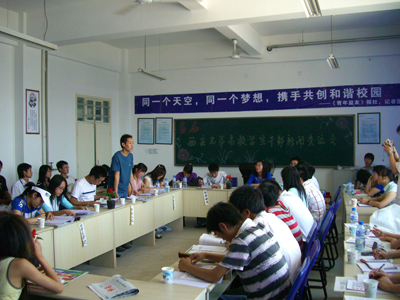 近日,由共青团西安工业大学委员会、《青年益友》报社、大学生记者团共同主办西安百事可乐友谊赞助的首届西安部分高校学生干部新闻工作交流会在我校举行。西安交通大学、西北大学、陕西师范大学、西安邮电学院、陕西科技大学、西安石油大学、西北政法大学、西安工程大学以及西安医学院等10所高校的代表参加了本次交流会。