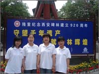 这次活动是继2006年11月19日我校与西安碑林博物馆共建爱国主义教育基地之后,我校学生首次在西安碑林博物馆开展实践活动。此次活动在人文学院和西安碑林博物馆双方领导的共同关心和支持下,在我校人文学院学生的积极参与下,经过前期策划、人员招募、知识培训、面试考核等各个环节,最终,人文学院06级的李敏、孟慧娟,05级的张磊、胡忠英四名同学被选中。她们凭借丰富的专业知识和对碑石文化的详尽了解,以及热情周到的服务赢得了广大游客与碑林博物馆领导的一致好评。其中,李敏同学创下了一天共带团、队6批次的佳绩。