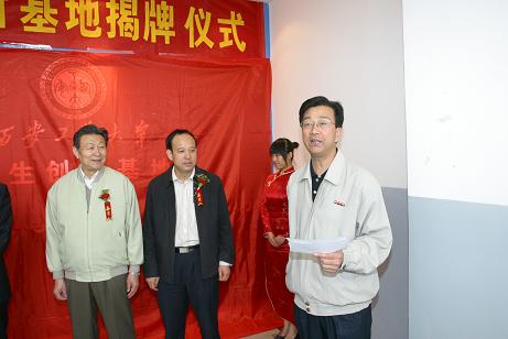 随后,我校又举行了大学生创新基地的揭牌仪式。在仪式上,赛云秀书记做了即席讲话。