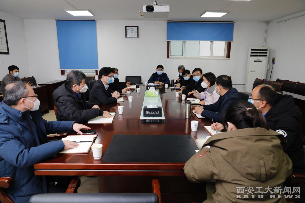 (本网讯)1月6日下午,西安市未央区政府副区长解丹蕊一行来我校指导疫情防控工作并召开座谈会。省疫情防控驻校工作专班负责人赵发宝、李鹏飞,校党委书记刘卫国,党委副书记王军周、梁云鹤,副校长祁玉龙出席会议。