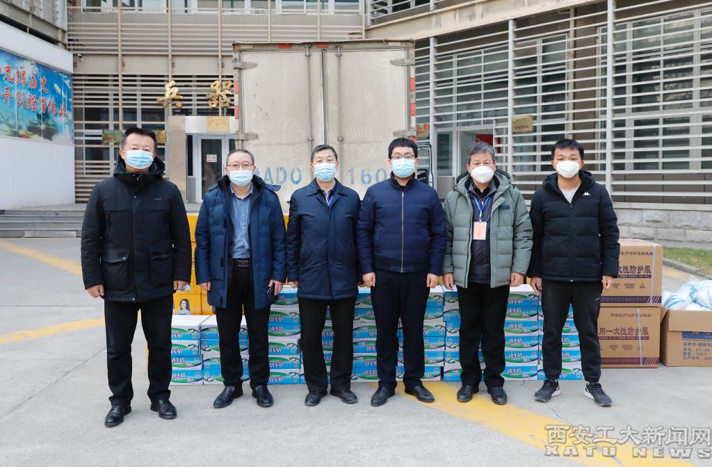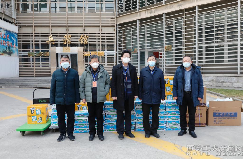 (本网讯)1月3日上午,未央区政府联合中建七局四公司西安分公司向我校捐赠防疫物资。未央区政协副主席、未央区政府驻西安工业大学疫情防控工作专班负责人赵发宝代表捐赠方捐赠物资,西安工业大学党委书记刘卫国代表学校接受物资。党委副书记王军周、副校长祁玉龙出席物资交接现场。