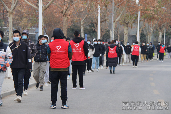 国旗护卫队,6点15分接到核酸检测时间调整通知,7:30准时到达集结地点,队伍整齐划一、口号响亮,在寒风中坚持值守近10个小时,全体核酸检测志愿者与国护队同学相互配合,完成了全部13栋公寓,20000多人的核酸检测引导工作任务,脸和手冻得通红,脚站麻了,跺一跺继续工作,身姿依然挺拔,笑容一直浮现在脸上,没有一个人掉队,没有一个人闹情绪,更没有一个人当逃兵,有同学因低血糖而摔倒、有被同学抱怨的……但是大家的笑容和热情不减,哪里需要就出现在哪里,体现了极强的纪律性和战斗力,这就是西安工大学子的风采,也是西安工大兵工精神的最生动体现,大家用自己的实际行动来保护我们的家人,再次感谢国护队和今天所有的核酸检测志愿者同学们,学校给予你们很高的评价,全体师生一定会在这个特殊的时期记住你们的,向你们致敬!你们用实际行动为五星红旗增添了一抹红色!