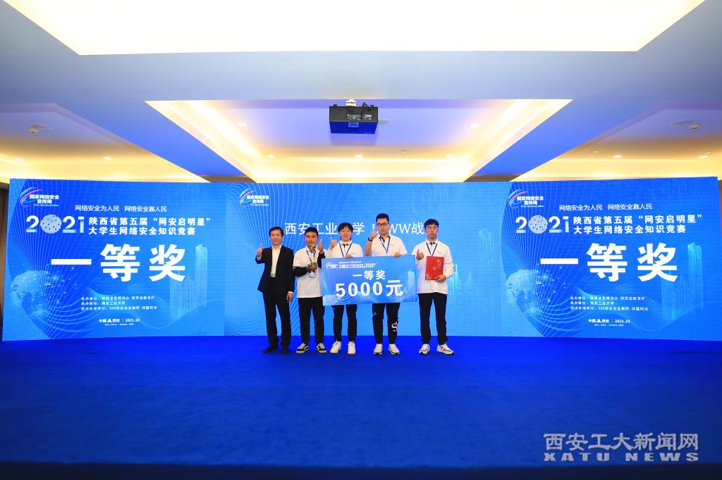 (本网讯)近日,由陕西省省委网信办、省教育厅主办,西北工业大学承办的陕西省第五届“网安启明星”大学生网络安全知识竞赛线下总决赛在西北工业大学友谊校区举行。全省58个高校组队参赛,10支队伍进入总决赛。我校计算机学院教师喻钧带队,与来自计算机科学与工程学院的冯宝成、刘亦譞、文飞飞,魏帅帅等四位同学组成“LFWW”战队参赛。
