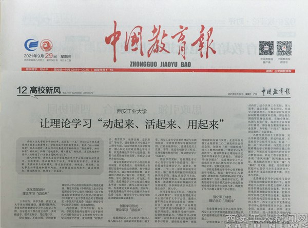 (本网讯)9月29日,《中国教育报》刊登校党委书记刘卫国《西安工业大学:让理论学习“动起来、活起来、用起来”》署名文章。