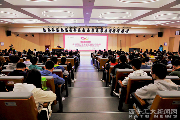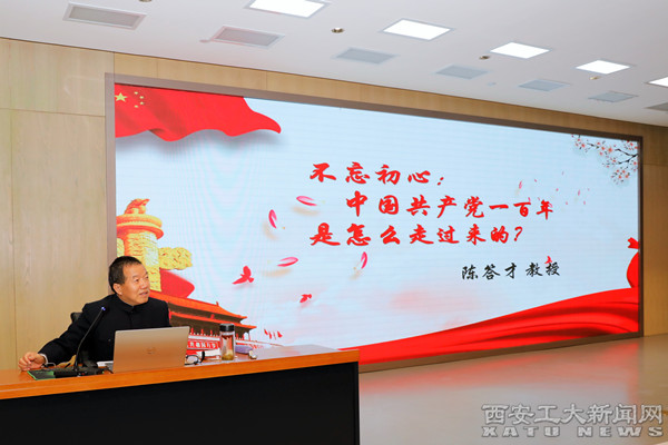 (本网讯)10月29日,陕西师范大学陈答才教授来校为我校师生上了一堂《不忘初心:中国共产党一百年是怎样走过来的?》生动的思政课。这是我校“四史进课堂”系列活动之一,是学工部、马克思主义学院、校团委联合举办的发挥课程思政协同育人的积极实践。