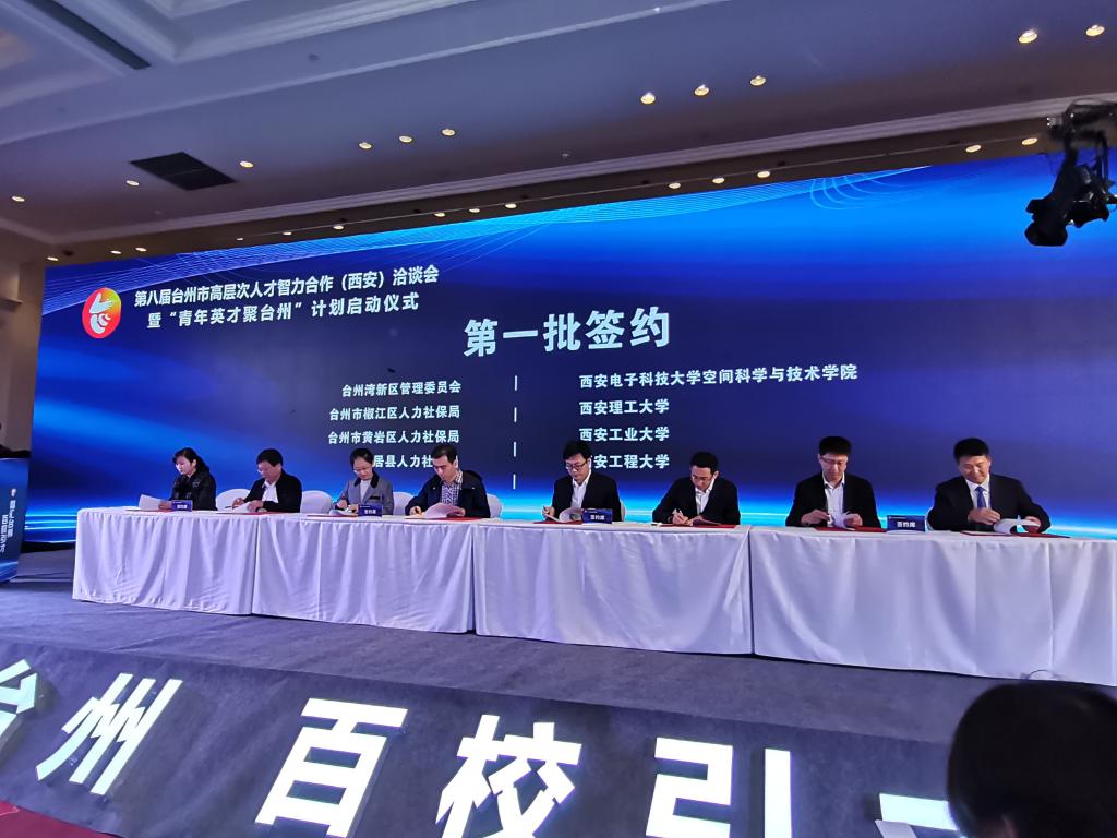 (本网讯)10月17日,在第八届台州市高层次人才智力合作(西安)洽谈会暨“青年英才聚台州”计划启动仪式上,我校与台州市黄岩区人力资源和社会保障局签订了“黄岩-西安工业大学引才工作站”合作协议。