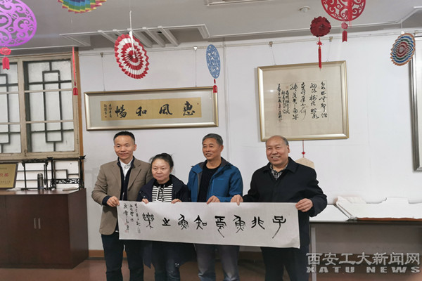 参观结束后,老教授书画研究会与西安碑林博物馆书法艺术中心进行了书法交流。常栓怀、张甲石、白全章、刘木兴等老教授与碑林博物馆书法艺术中心主任王冰、书法家武儒昌等现场泼墨,引来参观者阵阵掌声喝彩。碑林博物馆与西安工业大学老教授的书画文化互动展示了独特的魅力。